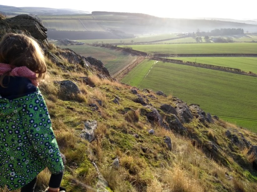 Beginning our descent, we soon pass’d a couple of better-kitted-out walkers (still haven’t bought my new shoes), among a scattering of folk we saw in the hour we were there. The Traprain experience is varied & attractive, whose gentle business is not at all abrasive if you desire peace & quiet.
