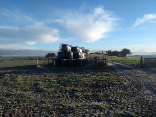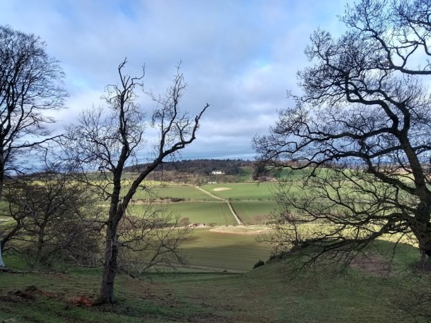 The space is on the right as you drive from Haddington; there’s a little signpost pointing into a field, which is where this walk begins. I started to take notes a couple of weeks ago, well before the recent February heatwave, on a brilliant morning in icy conditions. Cue ethereally atmospheric early morning light-shows.