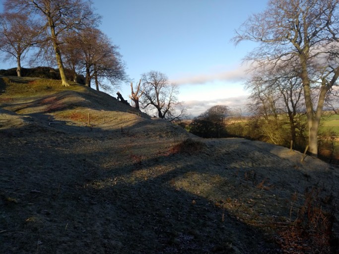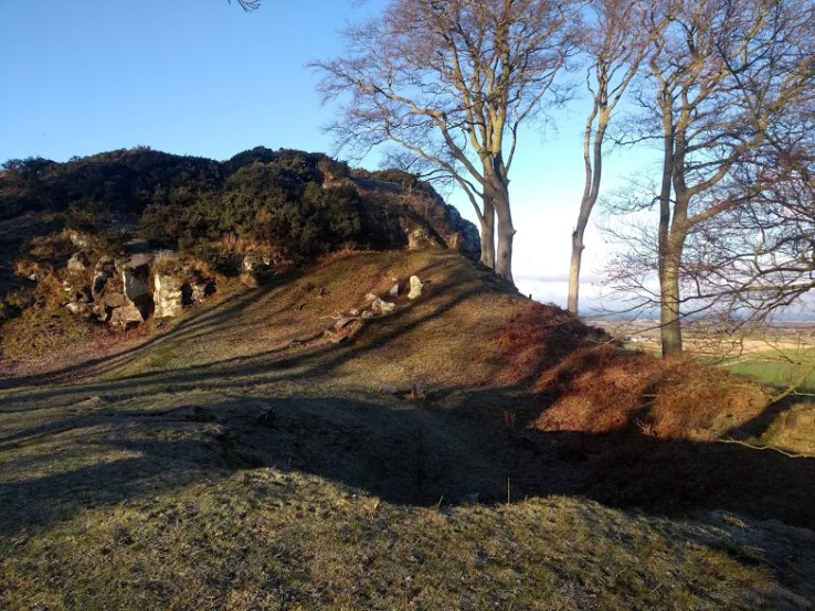Once over the fence, with it being Winter I was relishing the gnarly aspects of the skeletal trees. Then, after following a path through thick gorse, about a half-mile before Barney Mains Farm I reached the quite unexpected but completely enthralling remains of Kae-Heughs, another of the Gododdin promontory hillforts.