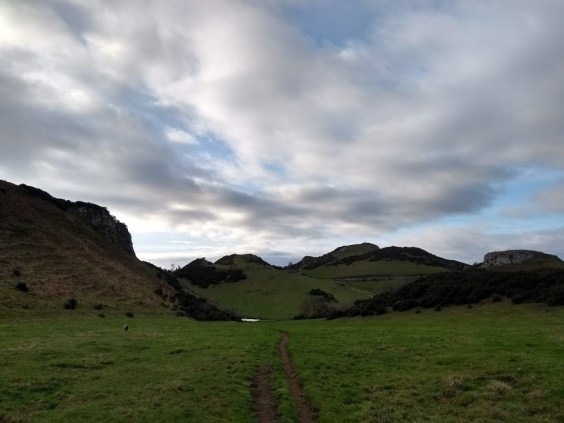 Heading west now, with a sheer slope to your left, one has to climb over another gate, before entering perhaps the most gorgeous place in the county. Aesthetically, you encounter deep-history in a glance; carboniferous tuffs and trachytic lavas all converging in one picture-frame scene