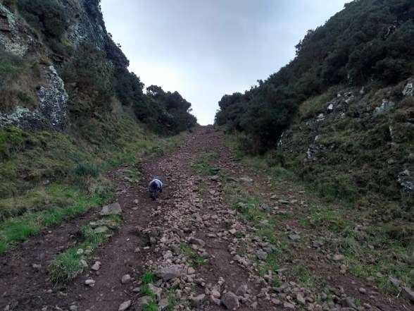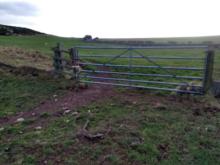 After Daisy quench’d her thirst, we turned upwards in the direction of a gap in the ridge, as if the blade of some diety had chopped it in two. Its better to not follow the path – which is pretty much overgrown with gorse – but instead go across the field & join the path just before it begins its ascent through the gap.