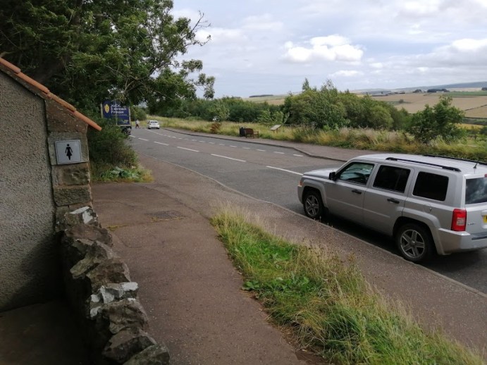 Beyond a handsome primary school & a communal park is the hilly, happy high street which hasn’t chang’d aesthetic, one expects, for a century or more. For walkers on the Gododdin Heritage Trail, this is where one would spend a night, availing of the local eateries & accommodation. Plus, if there’s been ankle sprain or something, there’s frequent busses back to Edinburgh & Dunbar.