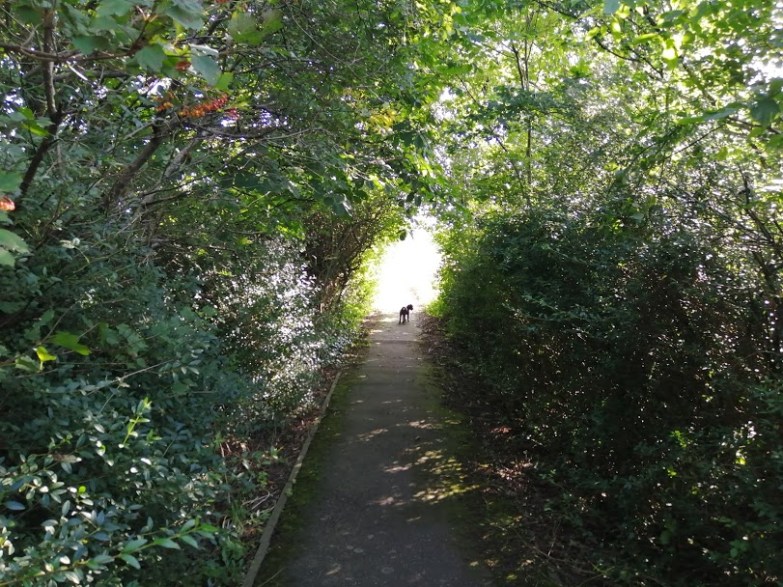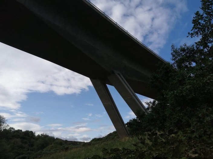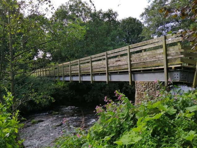 This is one of the most beautiful stretches of the Trail, right on the banks of the Tyne, flush with woodland & high-banks & just pure serenity. After a good way, passing under the spelndidly-hewn motorway bridge, straight from the playbook of Isambard Kingdom Brunel, one comes to a much smaller wooden bridge, which is where I shall leave this segment for now. But this is a key link to the Pencraig hinge of the 8 I’d mentioned earlier – from here one can walk all the way back to Haddington along the Tyne, or even head back up to Pencraig itself, the red route in the second of this post’s maps.