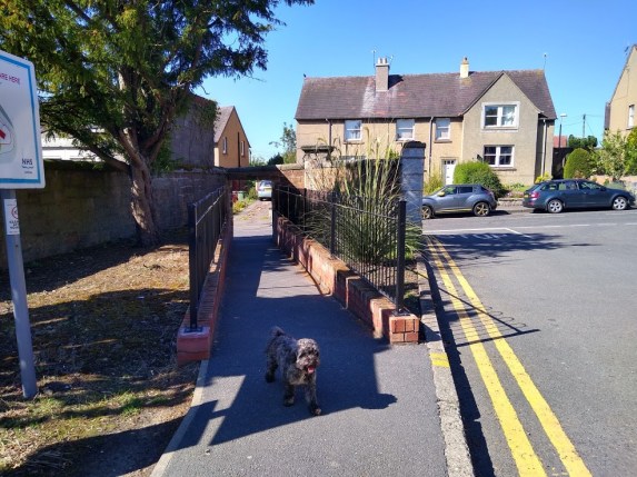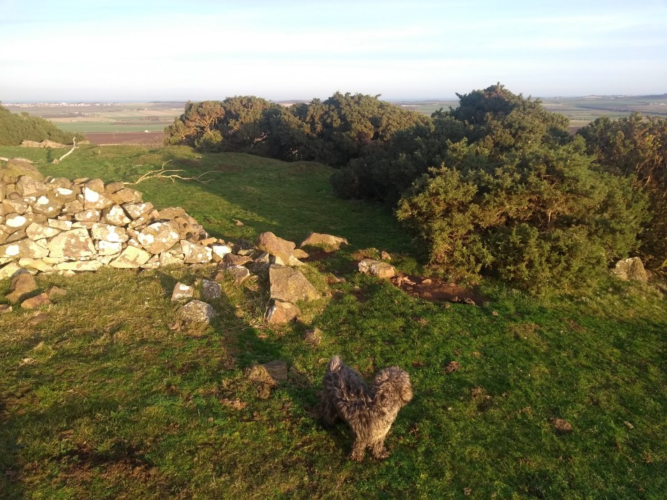 After a pleasant wee chat with George & his architects – they were all having lunch together when I popped mi ‘ead in – I left Papple in the direction of Garvald. Passing by the farmhouse you come to the road, where you must turn left. In October 2019 the walls to Papple/Whittinghame are being restored by a lovely local lad called Giles, who expects his work to be finished by next March.