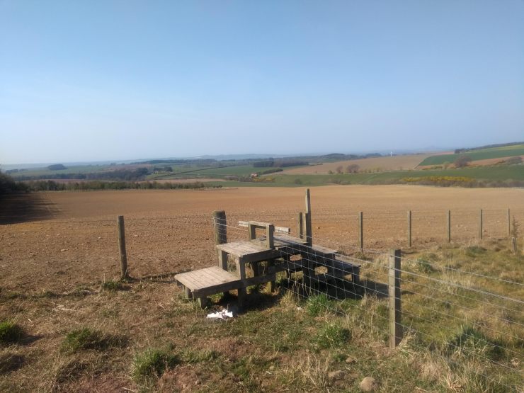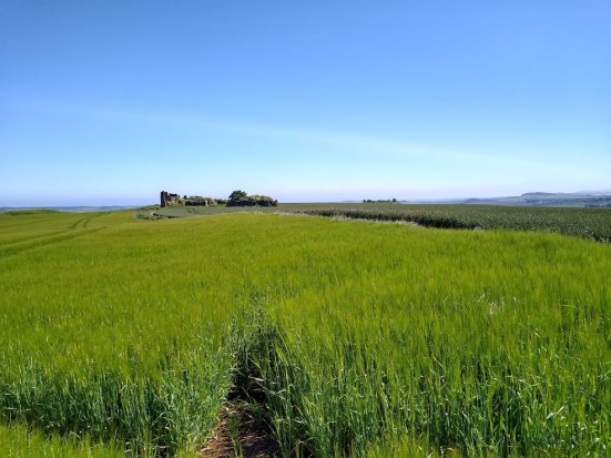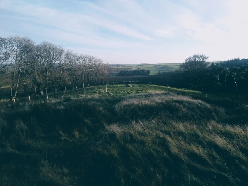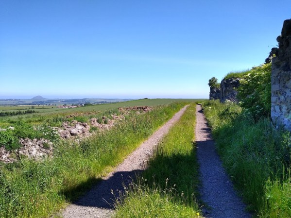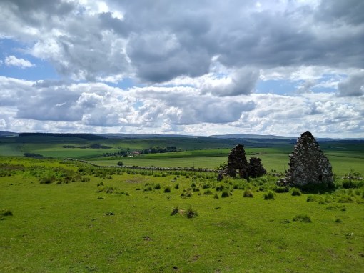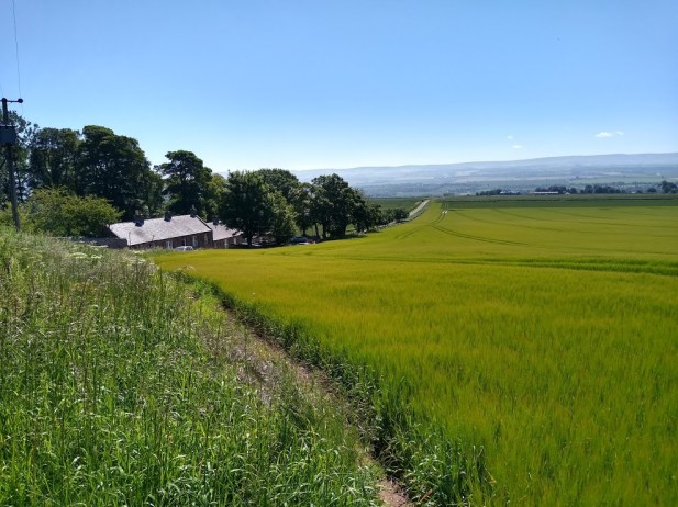 We last left the Gododdin HeritageTrail on a quiet road junction just to the south of Papple. Heading north along the tarmac, or the wide green verges, you soon come to a hillcrest, beyond which unfolds a splendid view of Arcady. The Lammermuirs crown the distance, while in the bottom foreground of this perfect scene stands Papple House & its gorgeous Steading, the latter of which is currently in a state of renovation.