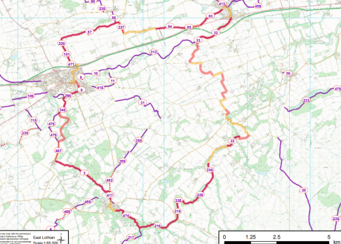 Following the road down the hill leads you to a junction – the North Lodge of Whittinghame is on the left & the road to Haddington on the right. Ahead is the uphill road route we took today – turning right at the junction in the direction of Gifford first photo below). It is also possible to enter the field across from North Lodge, head along the valley bottom to the gate, then take a sharp left up the hill.