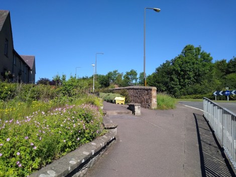 Back on the Trail, it doesn’t actually go into the village, however, but turns left at the bottom of the road, passing the extremely old church & heading along a path by the left bank of the Papana. This is also named after a member of the Gododdin contingent, I believe, called Bubon. The stanza reads;